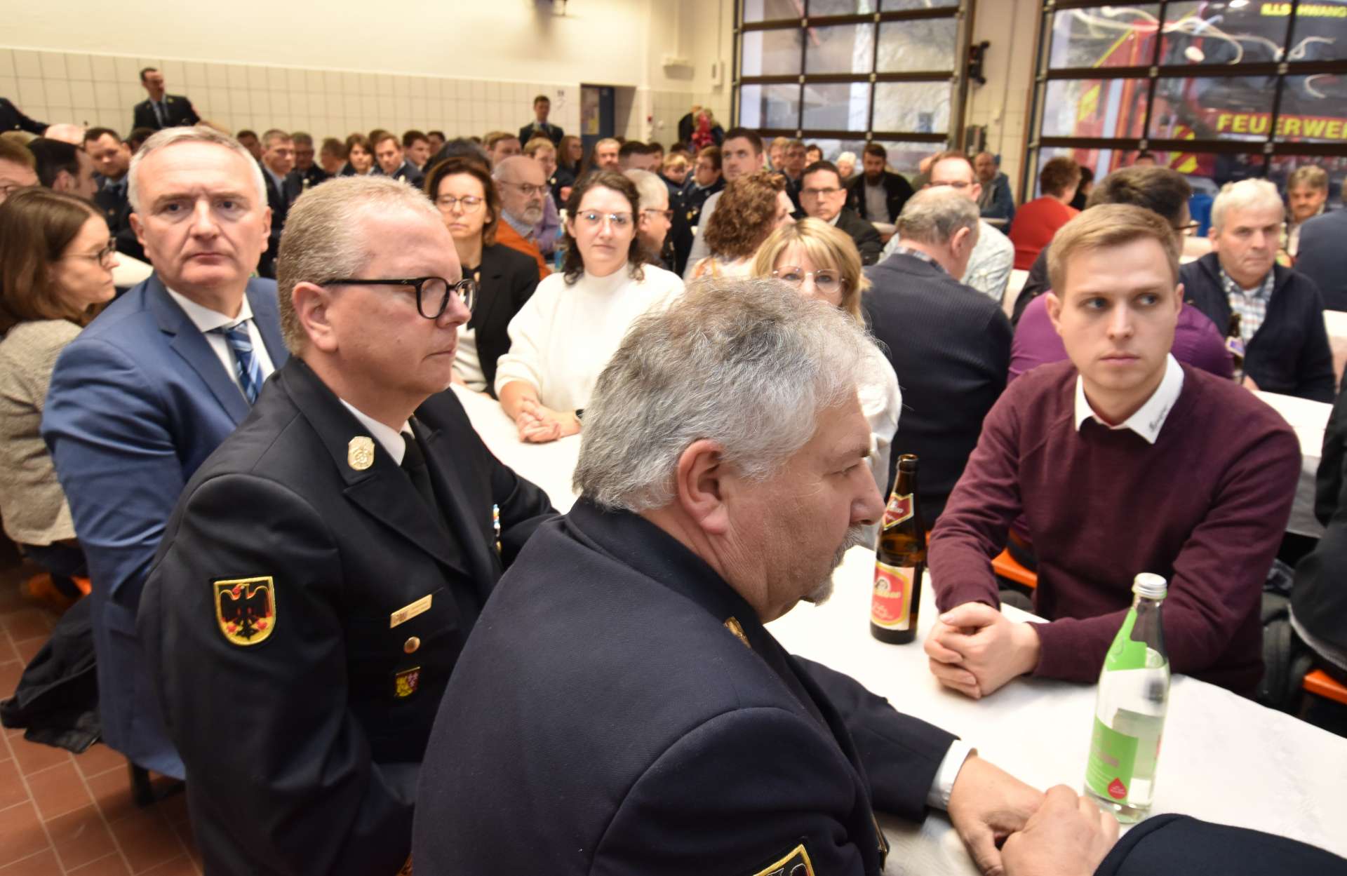 Bürgermeister Dieter Dehling freute sich über Ehrengäste aus den verschiedensten Bereichen, die an der Feierstunde teilnahmen. Höhepunkt waren die Weihe des Gebäudes und die Segnung des Fahrzeugs. Pfarrer Arweck betonte, es sei wichtig, beides unter den Schutz Gottes zu stellen. Trotz moderner Technik und guter Ausbildung gebe es im Einsatz Situationen, die schwierig zu meistern sind. Die Gewissheit, Gott als Beschützer zu haben, gebe Sicherheit und Ruhe. „Für den oft risikovollen, ehrenamtlichen Einsatz der Aktiven gilt es besonders zu danken.“
