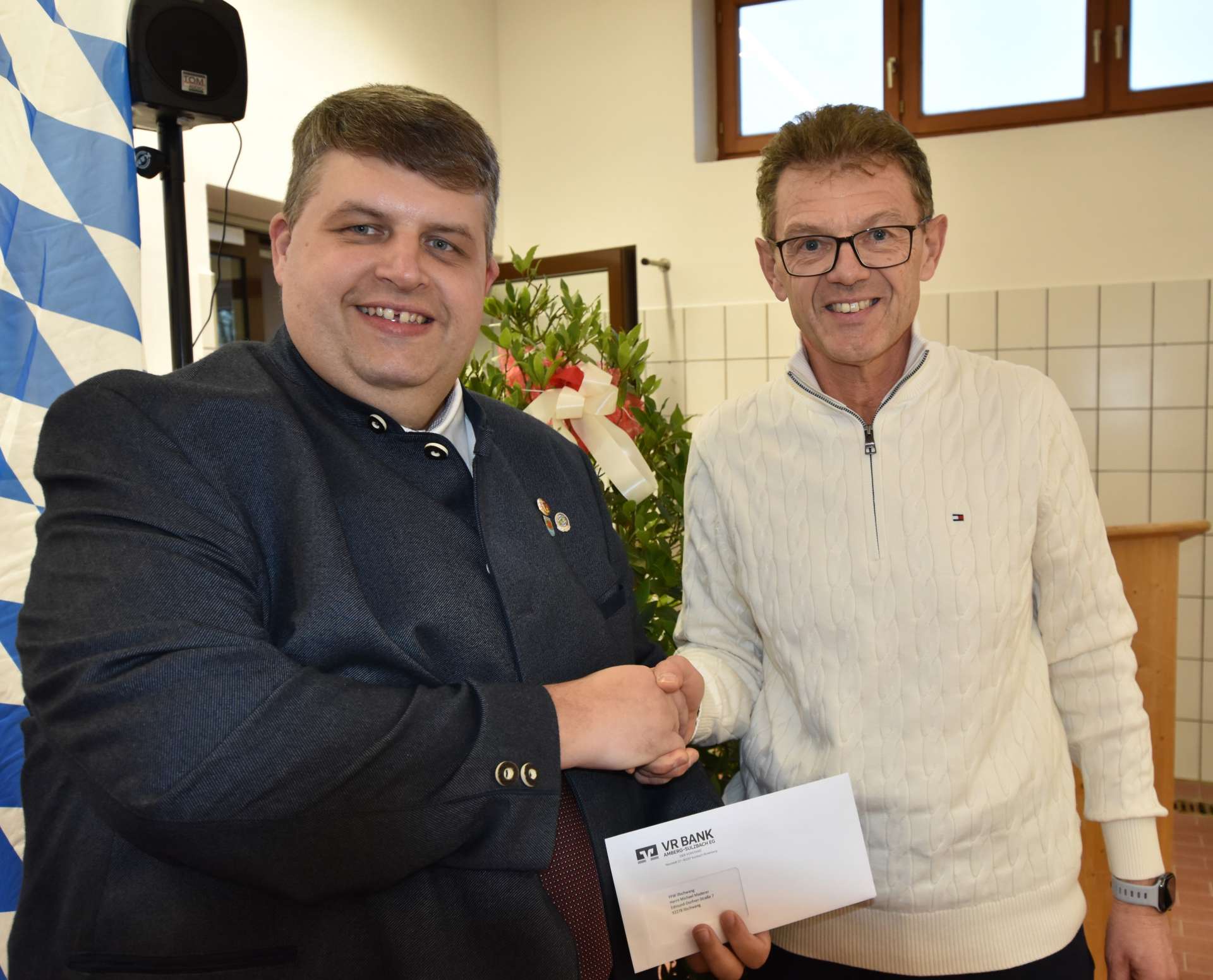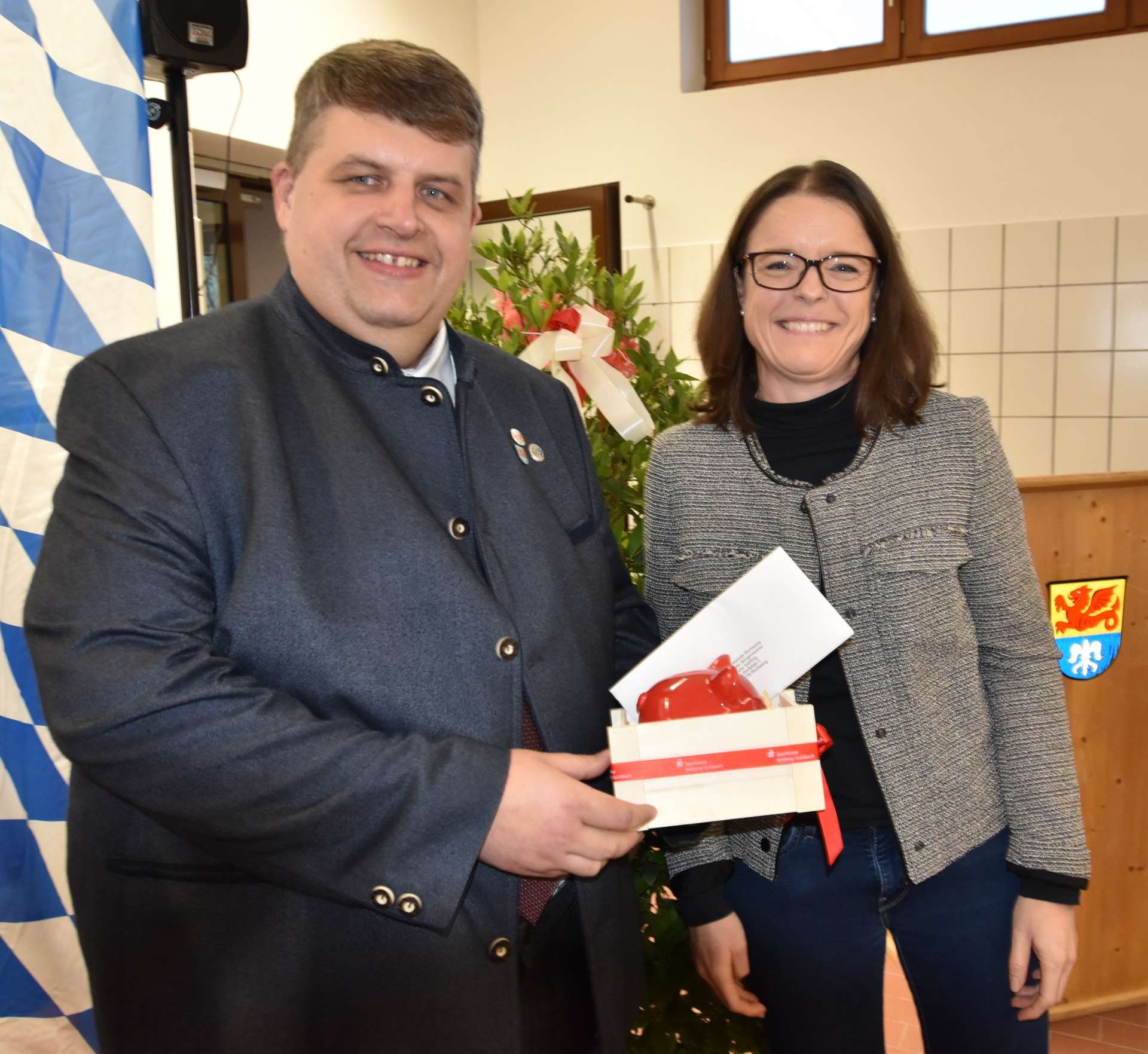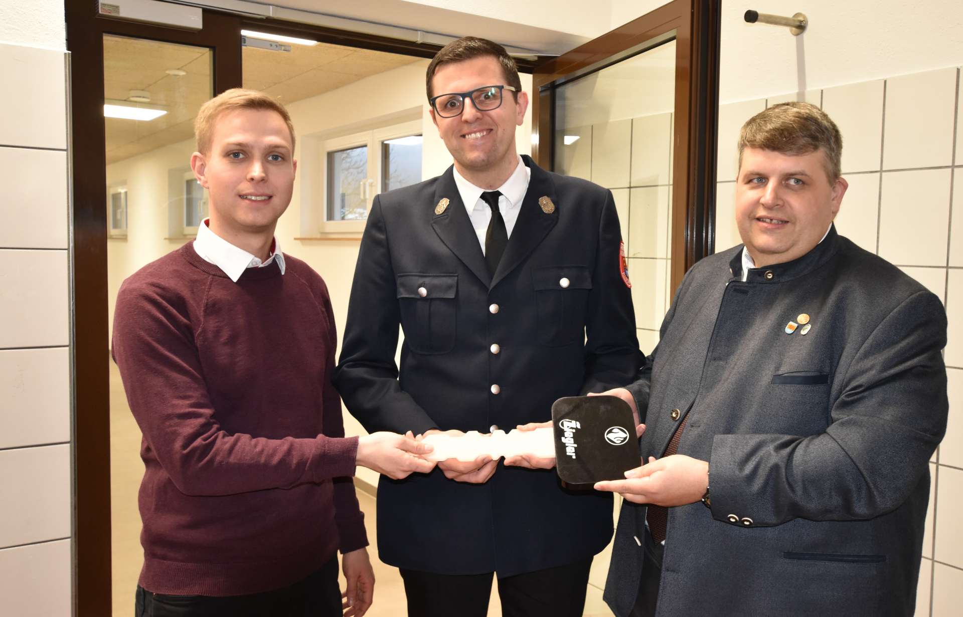 Thomas Stahl von der Firma Ziegler übergab einen überdimensionalen Fahrzeugschlüssel an Bürgermeister Dehling, den dieser an den Kommandanten weiterreichte. Für die Sparkasse Amberg-Sulzbach übergab Sonja Kalb, eine der Vorstände, ein gut gefülltes Sparschwein. Ihr folgte Andreas Reindl, Vorstandsmitglied der VR-Bank Amberg-Sulzbach, mit einer Spende von 500 Euro. Für die musikalische Umrahmung der Veranstaltung sorgte der Männergesangverein Illschwang unter Leitung von Clemens Lindner.
