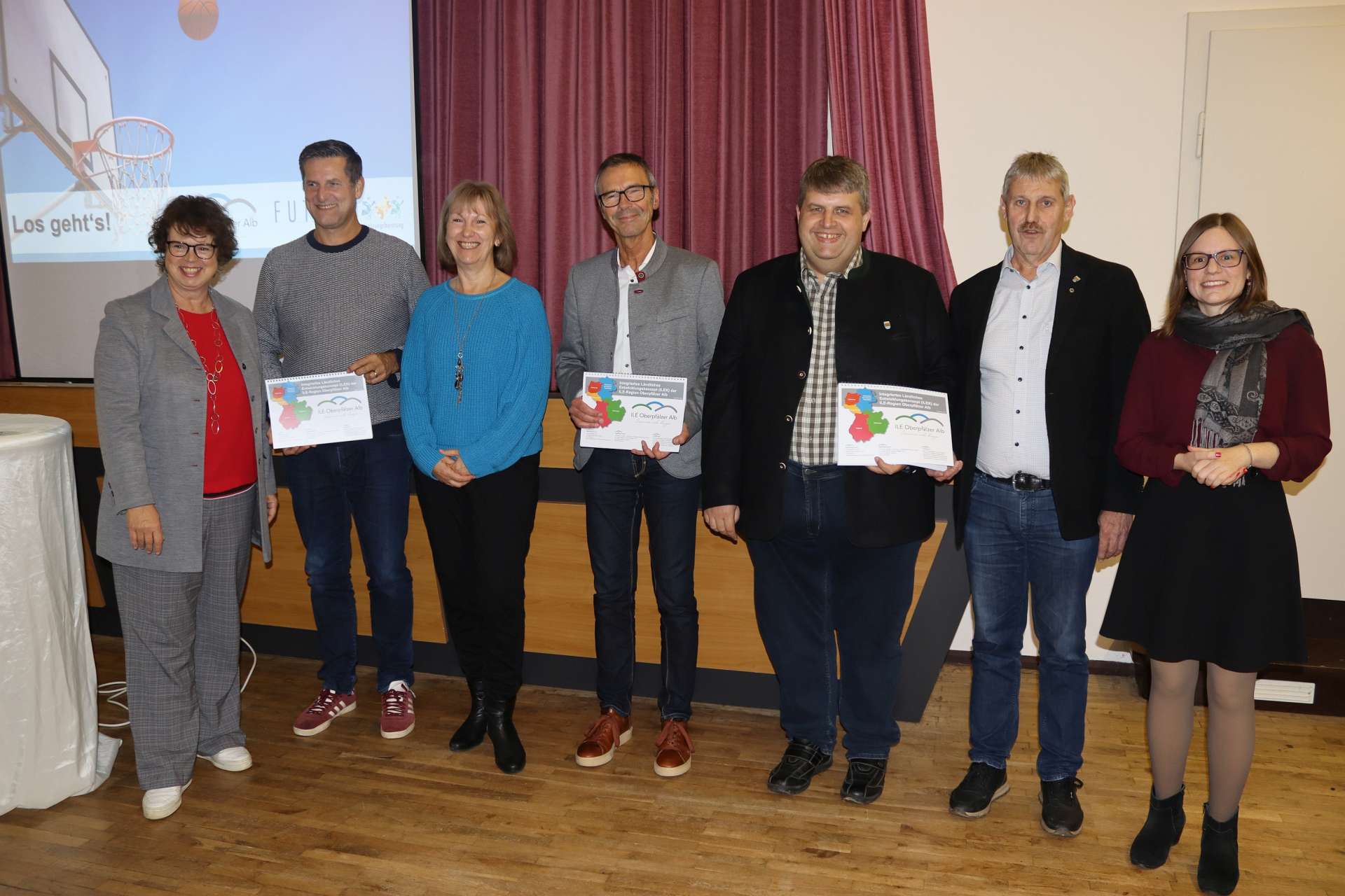 Eine engagierte Gruppe, die sich offen zeigt für neue Wege und gemeinsam Zukunft gestaltet (v.l.): Dr. Heike Glatzel (Geschäftsführerin der Konzeptagentur Futour), Roman Berr (Bürgermeister Etzelwang), Brigitte Bachmann (Bürgermeisterin Birgland), Peter Achatzi (Bürgermeister Neukirchen), Dieter Dehling (Bürgermeister Illschwang), Reiner Pickel (Bürgermeister Weigendorf), Carina Steger (Projektleiterin).